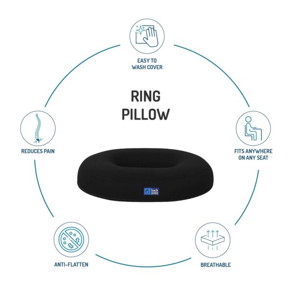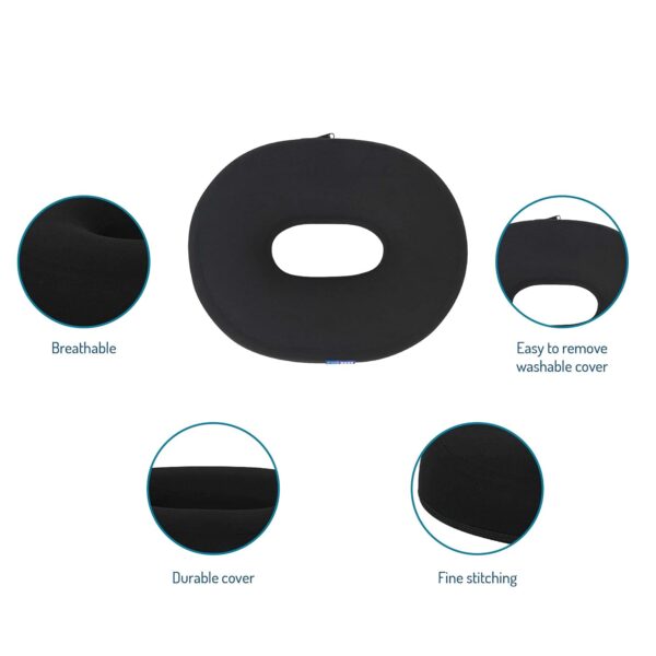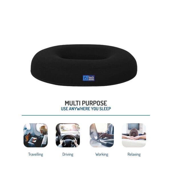 - Doctor-Recommended Donut Ring Cushion – Ergonomically designed to fit your body contours, this cushion evenly supports the tailbone and reduces pressure on hips, spine, and lower back. Ideal for managing hemorrhoids, tailbone pain, herniated discs, pressure ulcers, post-surgery recovery, prostatitis, fistula and piles