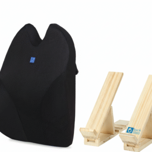 BackGood Work Essentials Combo – Adjustable Posture Plus Lumbar Support Cushion (Small, Beige) + Ergonomic Pine Wood Finish Laptop Stand | QI Spine Clinic Designed Back Pain Relief & Posture Correction | Office & Home Use