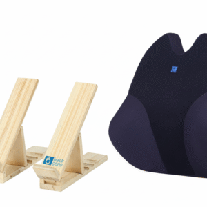 BackGood Work Essentials Combo – Adjustable Posture Plus Lumbar Support Cushion (Small, Beige) + Ergonomic Pine Wood Finish Laptop Stand | QI Spine Clinic Designed Back Pain Relief & Posture Correction | Office & Home Use